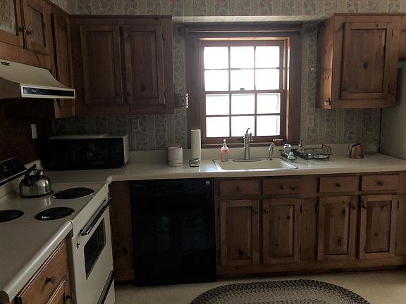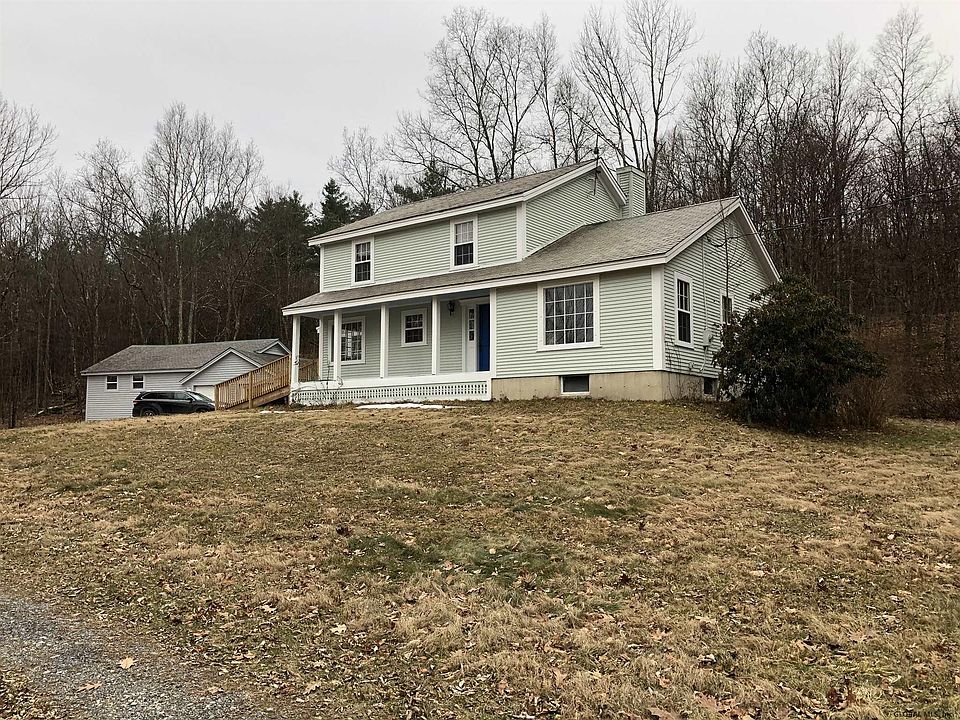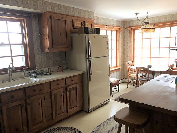 This is a well kept, traditional style home with lots of wood floors, formal dining room, country kitchen with a lovely eating spot by the windows, large living room , den or 3rd bedroom on 1st floor as well as 1/2 bath, laundry room and enclosed porch. 2nd level offers a spacious master bedroom with sitting room and private bath, 2nd bedroom and full bath with claw foot tub. Full poured concrete basement. Oil boiler in basement and a wood furnace in the basement area of the garage which heats up 10,000 gallons of water that is in a insulated tank and this water radiates under the floors on the 1st level of the home. 2 car garage plus potential for finishing off a studio or office space off to the left of the garage area. Lovely setting, woods and open area, privacy, and more.
