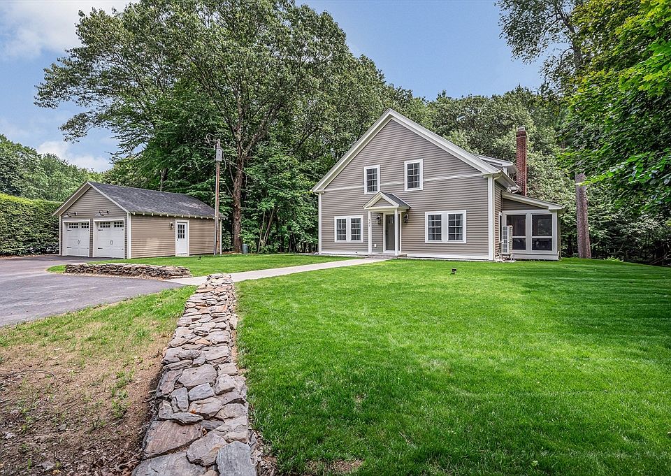 JUST LIKE NEW - STUNNING FULLY RENOVATED TO THE STUDS COLONIAL WHERE TIMELESS ELEGANCE MEETS MODERN DESIGN. Featuring sophisticated, designer-selected finishes throughout. Every inch of this home has been thoughtfully curated to impress. From the moment you enter prepare to be wowed by the seamless blend of style, comfort, and luxury—this home is truly MAGICAL. Sunny contemporary kitchen w/7' island, soft close drawers/cabinets, quartz countertops, ss appl open to the dining area & famrm w fireplace. This part of the home is highlighted by windows and sliders onto a deck the expanse of these rooms. Lovely dining room and nice office flank the front entrance. Open staircase to the 2nd fl brings you to the primary ensuite with a wall of closet space and a gorgeous full bath. 2 additional nicely sized bedrooms and a bonus area for an office or reading nook. Full bath & laundry area complete this floor. Location - Relax on the screen porch o/l the private lot. So quiet & peaceful!