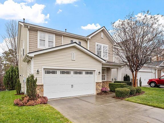 This home checks all the boxes—spacious interiors, thoughtful upgrades, outdoor spaces designed for everyday living, in a convenient location. From the moment you step onto the charming front porch, you'll feel the comfort and ease this home offers. Inside, a generous flex room greets you with lots of light and giving you the perfect space for a home office, playroom, a second dining area or formal sitting area. The open-concept family room features a cozy gas fireplace and flows seamlessly into a bright, oversized kitchen with tons of storage and an island that invites gathering. Upgrades include 6 inch baseboards, crown molding, and a bump-out in the dining area giving ample space for entertaining. Upstairs, the primary suite is a true retreat with a large bedroom, a spacious walk-in closet, and a private bath complete with double sinks, a step-in shower, and a soaking tub. Two additional bedrooms, another full bath, and a large loft offer plenty of room for guests, family hangout time, or a second work-from-home space. The laundry room is conveniently located on the second floor as well. Step outside to a backyard made for relaxing and entertaining—a large paver patio provides room for grilling, eating alfresco, or simply unwinding at the end of the day while enjoying the views of the pond. The setting feels private and peaceful with enough room for all to enjoy. Recent improvements include a new roof in 2022, patio pavers added in '24, HVAC replaced in '23, and home has an irrigation system. Situated in the highly sought-after Amberly community, residents enjoy resort-style amenities: multiple pools, a clubhouse with fitness center and indoor court, playgrounds. Everyday conveniences are just moments away—Publix, Aldi, and many restaurants, Dr. offices, shops within very close proximity. Outdoor lovers will appreciate nearby McCrimmon Park with tennis and pickleball courts, and the American Tobacco Trail for miles of scenic, traffic-free biking and walking. With close proximity to RTP, major highways, and RDU Airport (less than 15 minutes away), this home blends comfort, convenience, and an unbeatable location. A wonderful combination of space, updates, and lifestyle—this one is truly a standout.