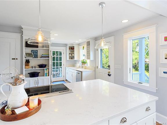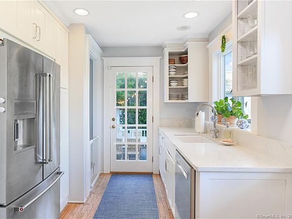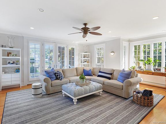 Beautiful beach colonial located on historic street just steps from downtown Fairfield and a short stroll to Jennings Beach. Set back on nearly 1/4 acre of fully fenced, professionally landscaped property, this home seamlessly blends old world charm with modern day living. Open concept chef's kitchen with quartz countertops and stainless steel appliances with side deck that feels like a private outdoor dining room. Lovely open dining area with coffered ceiling leads to large family room with interior pocket doors and French doors leading to back patio. Stunning master suite with vaulted ceilings, large master bathroom and huge walk in closet; step out onto your balcony and enjoy evening summer breezes. Two additional bedrooms, separate office and renovated, full bathroom. Special bonus area above 3rd bedroom provides an enviable hang out area for kids/teens. 2nd floor laundry room, gas heat, detached garage, unfinished basement. Not in flood zone. Very special home, won't last!