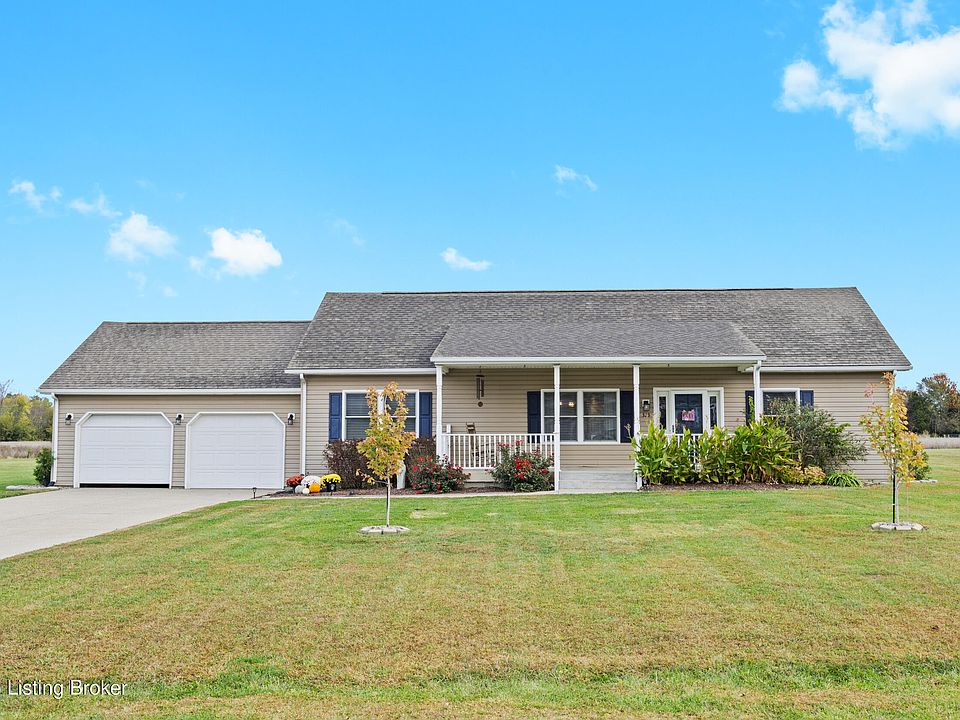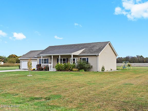 Your charming home awaits! Escape to the peaceful countryside with this beautifully landscaped gem. With pride of ownership flowing throughout, relaxation awaits you on the back deck situated on a spacious yard. This home has an open and inviting living room, perfect for gatherings and everyday living. The kitchen is fully equipped with modern appliances and ample cabinet space. The dining room is adjacent to the kitchen, ideal for meals and entertaining guests. Enjoy even more living space in the partially finished basement, perfect for a family room, home office, gym, or guest area. This retreat showcases pride of ownership throughout. Not only is it move-in ready, it's located 5 minutes from Blue Oval Plant and 30 minutes from Fort Knox. Prime location! Come e