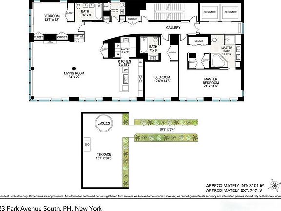 Exclusive Full-Floor Penthouse at 323 Park Avenue South Discover a rare chance to own the only full-floor penthouse in this prestigious boutique condominiuma sprawling 3,101 SF residence with 3 bedrooms, 3.5 baths, and an expansive 700 SF outdoor oasis complete with a Jacuzzi and gas grill. Designed for absolute privacy, this home occupies the entire floor and is accessible via a secure coded elevator that opens directly into your private foyer. Soaring oversized windows stretch over 83 feet along the South and West exposures, bathing the interiors in natural light while framing stunning views of iconic landmark buildings. Luxury Living at Its Finest Chef's Kitchen: Equipped with top-tier appliances including a Sub-Zero fridge, Wolf oven, Viking range with pot-filler, Bosch dishwasher, and Miele espresso machineplus a full pantry and laundry room with Miele washer-dryer. Elegant Interiors: Wide-plank hardwood floors flow throughout, complemented by a gas fireplace and wet bar in the living room. Spa-Like Bathrooms: Each bedroom features an en-suite bath with Nuheat heated floors, marble walls, and sleek stainless-steel cabinetry. The primary suite boasts a deep Jacuzzi tub, steam shower, and a sprawling walk-in closet with a dressing area. Smart Home & Prime Location Automated electric shades, a Sonos sound system, smart lighting, and thermostat controls are effortlessly managed via iPad. Nestled just steps from Madison Square Park and Gramercy, this Gwathmey Siegel-designed building places you near Manhattan's finest dining and hospitalityEleven Madison Park, Gramercy Tavern, The NoMad, and legendary hotels like The Edition and The Ace. A true urban sanctuary with unrivaled sophisticationschedule your private viewing today. EMAIL for fastest response.