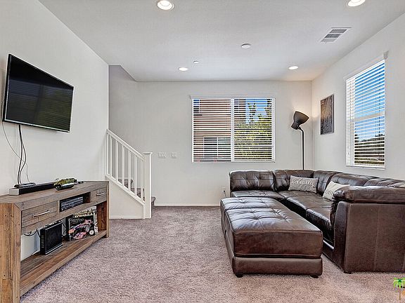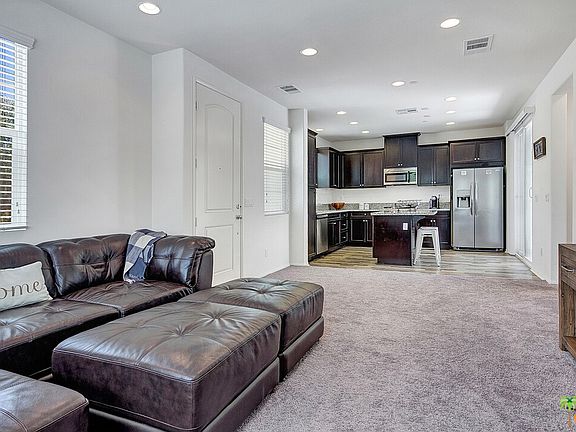 Beautifully appointed end unit town home in Spanish Walk. This lux property features 4 bedrooms plus bonus room, 3 baths, granite, stainless, wood laminate & carpet flooring, kitchen island, 2" blinds, large master suite with walk in closet, canned lighting, down stairs bedroom/bath, light and bright, spacious patio/yard, two car garage, views and end unit location with open space and not directly next to another townhome. Behind the gates of Spanish Walk is a wonderful enclave of homes, pools, spas, parks, playgrounds, club house, gym and kids water playground. IID Power! A must see home and a great deal compared to other homes in Palm Desert. Enjoy the resort style living today.