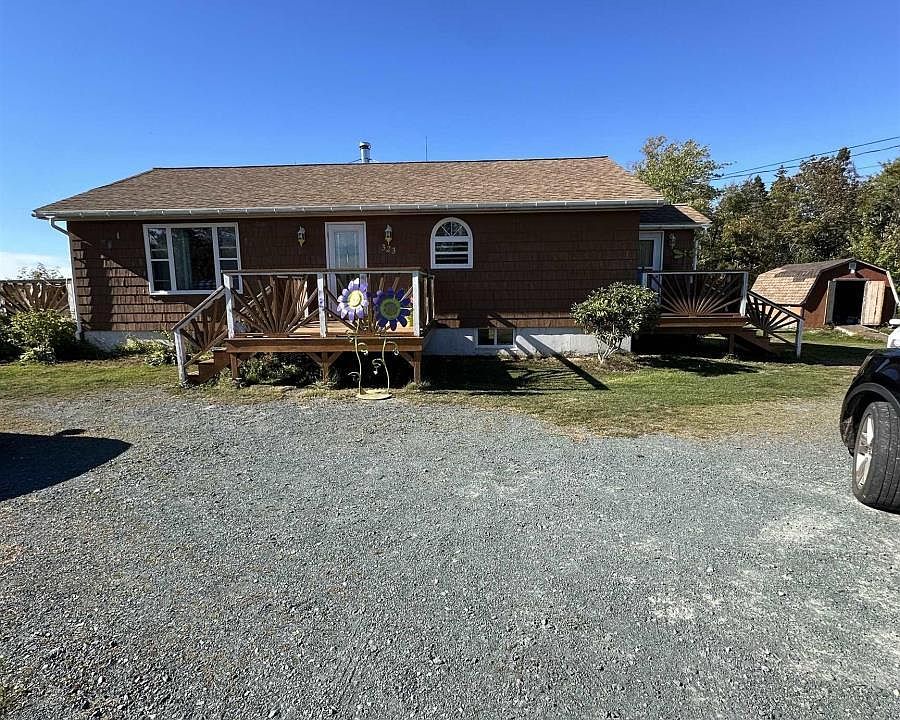 323 Pomquet Point One Rd, Pomquet. Nestled in the welcoming Acadian community of Pomquet, this property offers the perfect balance of privacy, space, and coastal living. Located just 17 minutes from downtown Antigonish and only 4 minutes from the provincial beach, this home sits on 5 acres of partially landscaped and treed land with unobstructed views of Pomquet Harbour. This 42 x 26 raised bungalow is designed for comfort and function. The main floor features an open-concept kitchen and dining area with four included appliances and laminate flooring flowing through most of the level. From the dining room, step out to a large screened-in, covered deck where you can relax and take in the view. A separate living room opens onto another deck with the same stunning outlook. Two bedrooms and a full bathroom complete the main floor. Additional decks at the front door and side entrance make outdoor living easy. The lower level is 95% complete and offers fantastic bonus space. The master bedroom (egress window required for code) includes a walk-in closet and a private 4-piece ensuite. A spacious rec room, dedicated storage room, and utility rooms for your furnace, water softener, and oil tank keep the home organized and efficient. A walkout leads directly to the backyard, making it ideal for entertaining or simply enjoying the quiet setting. With four deck spaces, stunning harbour views, and plenty of living space, this property is a must-see for those seeking a mix of rural charm and modern convenience. Quick closing is possible. (id:41440)