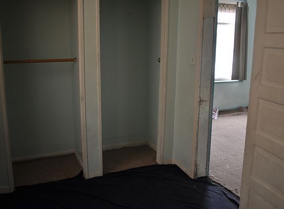 Exterior Features: Siding: In fair condition. Windows: Barred and in place. Soffits and Eaves: In place. SF: Lot 2975 Patio/Porch: none. Rear has covered area. Roof: Asphalt. Driveway: None. Interior Features: Living Room: Carpet, white walls and trim. Dining Room: Tiled floor, white walls and trim. Kitchen: (1) Cabinets, counter-tops, sink. (2) Lower half of the home, roof damage, cabinets and sink remain. Bathroom: Tub, toilet and sink remain. Bedroom: (1) White walls, trim and closet space. (2) Upstairs, loft room, closet space, (3) Second loft room, white walls, closet space. Basement: Unfinished, in the process of a remodel. Mechanics:Furnace. Garage: None
