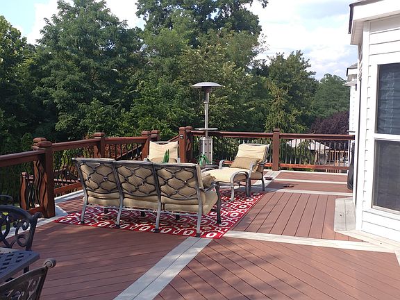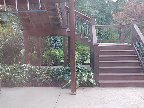 Stunning expanded 2 story! Beautifully maintained & updated w/extensive custom finishes. Impressive brick & stone front with copper-clad bay window, covered front porch, leaded glass entry door, expanded garage w/ 8 doors. Grand 2 story entry w/arched doorways, T staircase w/iron balusters, open staircase to lower level. Formal dining rm w/bay window & formal living rm that opens to huge family rm with 5 window bay, custom entertainment center w/gas fireplace, built-in speakers, wet bar. Fabulous gourmet kitchen w/custom cabinets, granite countertops, wood flooring, stainless appliances, large center island & breakfast rm w/bay & adjoining hearth rm w/gas fireplace. Upper level has a loft w/custom built-ins, massive master bedroom w/vaulted ceiling, huge walk-in closet & luxury bath, plus laundry, 3 large bedrooms, Jack & Jill bath & another full bath. Incredible finished lower level w/gas fireplace, amazing custom bar, bedroom & full bath. Private back yard. Patio. Composite Deck++