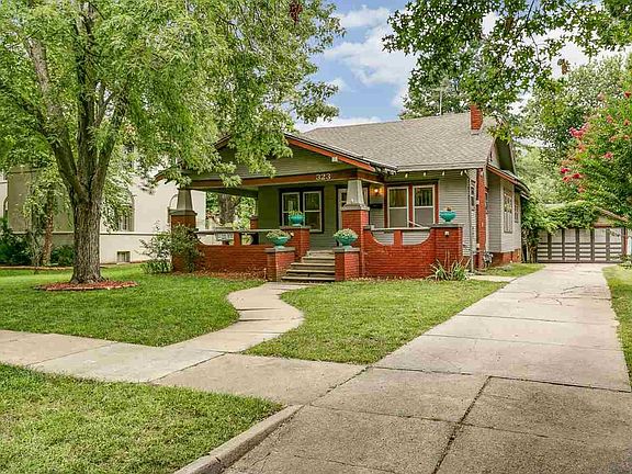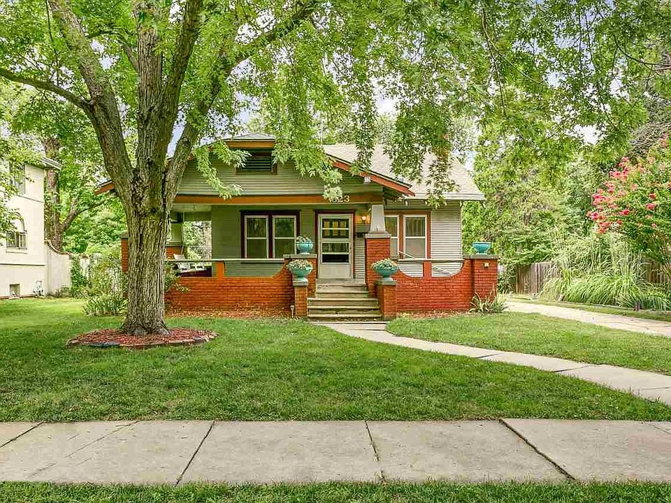 Large wrap-around front porch with nostalgic swing greets visitors to this home. Crafted in the airplane bungalow style, youâll find this home in the middle of a tree-lined street with well-maintained homes close to College Hill Park. Built in 1920, find great art deco style in what are perhaps a few original light fixtures, built-ins and hardware. Main floor features large living room able to fit several conversation areas with brick, decorative fireplace. Dining is divided among a formal room and a breakfast nook with built-in glass-door cabinets. The kitchen offers a walk-in pantry, spice cabinet plus cabinets with pull-out shelving, gas range, built-in microwave and refrigerator. Main floor offers two bedrooms and bath. Upstairs find the master, surrounded by windows, with a half bath. Also upstairs is a finished room with flexible usage. Basement has family room and lots of storage. Shady deck with pergola bursting with blooming wisteria and simple, fenced yard add to the charm.