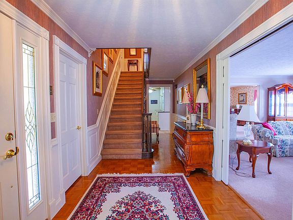 Nestled on a sprawling 3.41 acres, this property boasts a two story home that offers a total of 4 bedrooms and 3 baths. Inside, you'll find a warm and inviting ambiance with 4 fireplaces scattered throughout, creating a cozy atmosphere. Equipped with modern conveniences including a central vacuum system for easy maintenance and elegrant Corian countertops in the kitchen. A partially finished basement with a family room provides additional living space, while the sunroom invites you to enjoy the natural light while you look out into the pool area. For ultimate relaxation, a sauna awaits, or simply enjoy leisure time, in a heated 20x40 pool surrounded by meticulously landscaped grounds. As you explore the outdoor oasis, a captivating koi pond with a soothing waterfall becomes a focal point, adding a touch of serenity. With a total of 6 garage bays, storage and space are ample, while a tornado room ensures safety during unpredictable weather. To accommodate guests or provide separate quarters, a 2-bedroom guest house is a delightful addition, offering both comfort and privacy. Security is of utmost importance, and the property is equipped with a comprehensive security system. In essence, this property harmonizes comfort, luxury, and practicality, making it a truly exceptional place to call home.