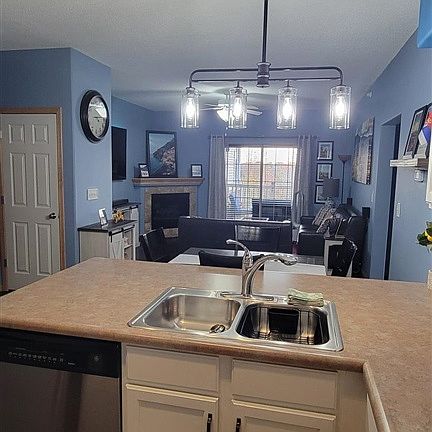 Top floor Condominium with an open floor plan, spacious dining and living area. Corner Gas Fireplace in Living Room, leading to the maintenance free deck facing the west providing beautiful sun sets! Stainless Steel Appliances in Kitchen with an attractive backsplash and Formica Counter Tops. Washer Dryer also included and located in Kitchen area with its own Laundry closet. White Cabinets and doors with Laminate flooring throughout the two bedrooms and one bath Condo. One car dettached garage for this wonderful East side location. New Water Heater recently replaced. Motivated seller!