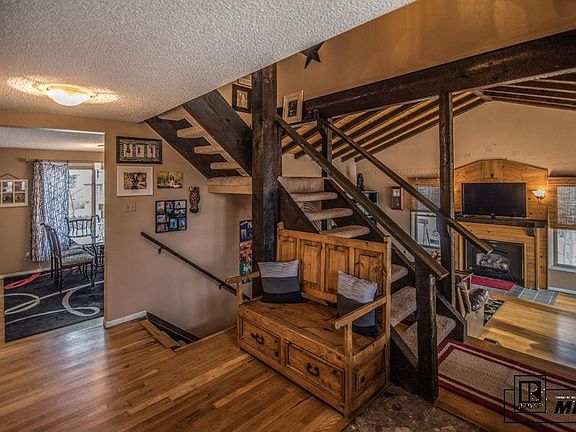 Lovely sunny open floor plan in this spacious custom built home with beautiful valley views. Vaulted ceilings, spacious windows, and gas fireplace in living room. Main floor family room has wood fireplace, wood floors and plenty of natural light from the big windows. Eat-in kitchen with stainless appliances, views of the backyard. Separate dining room with french doors walking out to the large deck. Main level powder room for guests. Lower level game room has tall ceilings, bathroom and laundry. Wood floors throughout, custom wall details, tons of natural light, sprinkler system front and back, large 2 car garage with loft storage. Resident bucks in the private backyard! Great rocking chair porch to observe the valley.