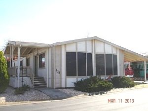 ''FIVE STAR ADULT PARK - THE REDWOODS'' Beautiful home located in the higher section of the Park & shows pride of ownership. Newer carpeted and covered 8 x 20 front porch; 16 x 23 living room; kitchen with lots of oak cabinet storage with a breakfast counter; 12.5 x 14.5 Master; 11 x 13 2nd bedroom; spacious laundry/mud room; 6 x 8 wood shed; washer/dryer/refrigerator included; MOVE IN READY.
