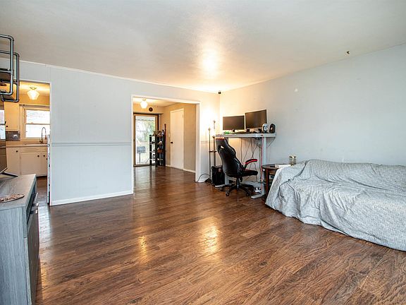 Three bed/two bath Ranch on a dead end street. Open concept kitchen, dining and living room make it easy to entertain. Through the dining room the slider leads you to the comfortably covered back patio and fully fenced backyard fully equipped for seasonal fun. Cute little hill would be excellent for sledding!