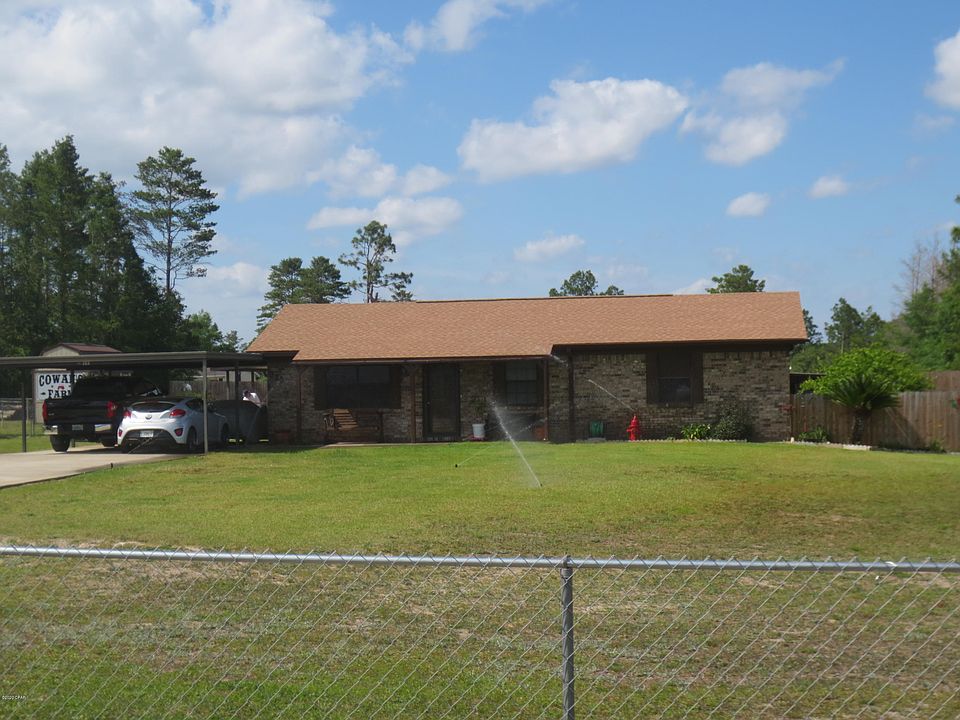 VERY WELL MAINTAINED HOME ON 2 BEAUTIFUL ACRES - This 3 bedroom 1.5 bath brick home is truly move in ready. Within the past 3 years the owners have replaced the roof, the air conditioner, installed a new 50 gal. Rheem hot water heater and a new septic tank and drain field. The interior includes a spacious 400 square foot den with a large brick fireplace. The home is all electric with the exception of a wonderfully efficient gas range. The manicured grounds include a 15 station sprinkler system, a new 8' x 16' yard building and a 15' x 12' work shed with a new roof and 20 amp electrical service. If you are looking for a low maintenance home in a quiet, private setting, this may be it. All measurements are approximate, verify if important.