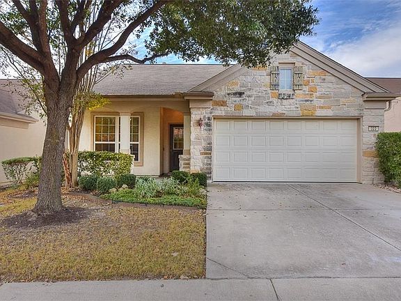 A gorgeous wooded greenbelt adds scenic views at this sparkling Sun City Texas Bayberry Garden Home, where you may Lock & Leave the yard work for others, as annual lawn care is included in the stated annual dues. Newly- installed carpet and freshly painted walls make this fun plan ready for an immediate move-in. Touting plentiful cabinets and counter space, the Kitchen is flanked by a generous front-facing Breakfast Room and by the Great Room, where full-view glass doors reveal the greenbelt vista.
