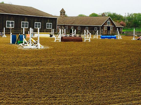 Property is a working horse farm, boarding and training facility, on 16 1/2+ acres and backs up to acres of preserved land with riding trails. Main barn has 25 stalls w/ceiling fans, 5 grooming areas, bathroom, heated office, tack room and viewing area. 2nd barn has 15 stalls, grooming area, outdoor wash stall & trailer parking. Indoor/Outdoor arenas includes 16,000 sq. ft indoor, 100x200 ring outside, & full size dressage arena. Main house has been completely renovated including 3 bedrooms, 3 baths, finished basement and 2 car attached garage. Separate living facility for employees includes 4 bedrooms, 2 baths, fully renovated mobile home.
