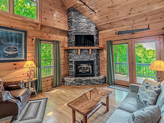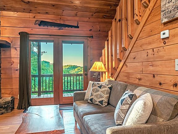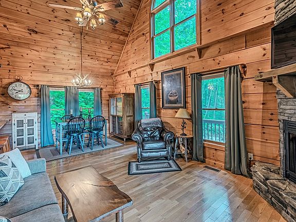 If you are looking for a solid log cabin in a PRIVATE LOCATION, you have found it! This fantastic 2BR, 3BA solid log cabin has YEAR-ROUND MOUNTAIN VIEWS, 1,680 sq. ft. of finished space, is on a spacious and very private 2.61AC lot, and is being sold fully furnished and can be placed on a short term rental program (although it is NOT currently on a rental program). Best of all, this cabin is located only 8 minutes from the downtown Blue Ridge restaurants and shops with only 3/10 of a mile of gravel road to access it. Located very close to USFS land, hiking, fishing, rafting, kayaking, and all the other activities that make the North GA Mountains one of the most desirable vacation rental markets in the USA. The basement has two sections -- a game room / family room, and a bonus room which could be converted into a 3rd BR. When you see these pictures you will quickly realize this cabin, at this price, will not last long!