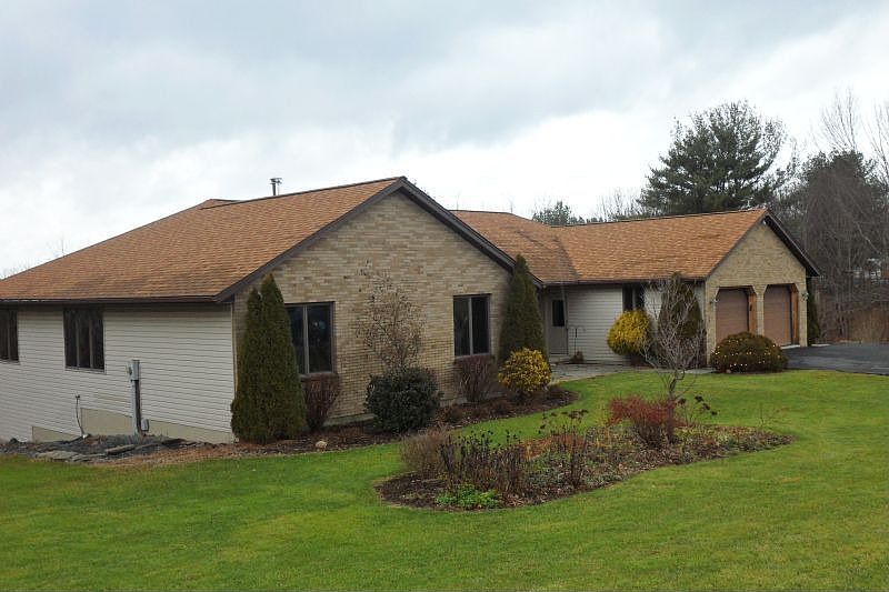Landscaped U-shaped ranch on three plus acres with new oak flooring, custom hickory cabinets, quartz counters, skylight that opens in great room with cathedral ceiling. Twenty four by twenty four two car attached garage, full walk out lower level with finished family room or entertainment area. There is also a HUGE area plumbed for kitchen and bath for a possible in-law apartment. Mineral rights convey, convenient to Route eleven and eye eighty one south.