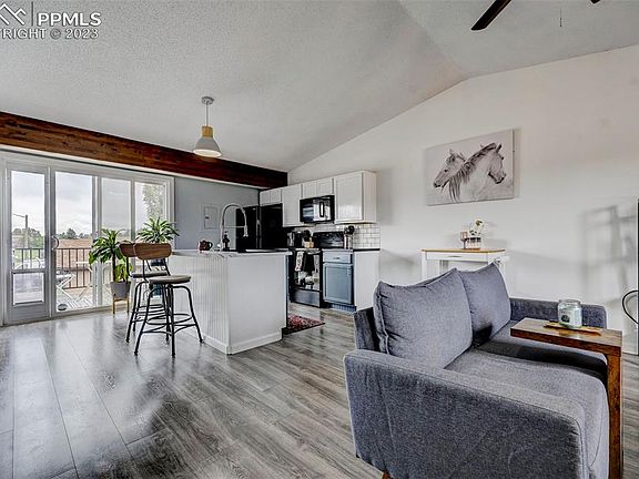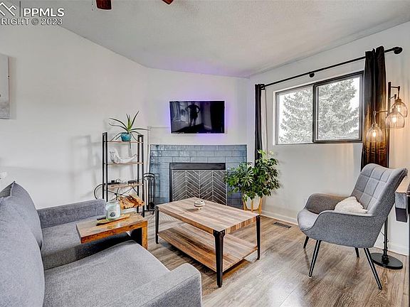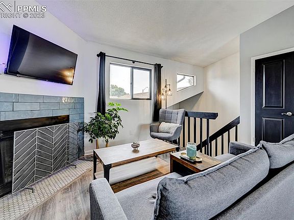 Welcome to this modernized townhome with Fountain Creek trailhead right out your door! Located near shops, dining, fire station & police stations this is a great spot! Newly remodeled kitchen with an island is a perfect place to sit and entertain while others cozy up to the statement piece fireplace. New appliances through the kitchen, including new stackable washer & dryer. The new flooring is set to impress along with the clean lines of statement walls. Master bath has been partially remodeled with new vanity, flooring and tile. The view from the spacious outdoor deck with new sliding glass patio door will allow for perfect evenings watching the sun set below the mountains. New Garage door and motor with keypad and two remotes. Trailor in pictures is no longer present. Bathtub in the downstairs bathroom is sold as is, call agent with any questions. **Please submit strongest & best offers no later than Sunday, August 6th by 5pm.