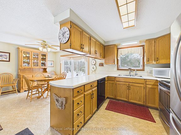 Welcome to this charming Royal Home in the heart of Point Clark. Set on a beautiful, mature treed lot with detached garage (18' x 24'), this well-cared-for property offers comfort, practicality and an unbeatable location near the water. The open-concept kitchen and dining area provide a welcoming space for everyday living and entertaining, while the sunken living room adds character and a cozy place to relax. With two bedrooms and one bathroom, this home is an ideal option for first-time buyers, downsizers, or those looking for a relaxed lakeside lifestyle. This home also offers a covered porch (11' x 14') and patio door walkouts from both bedrooms. Recent updates that add peace of mind and efficiency include heat pump (2023), water heater (2024) and air exchanger. Family room, storage area and potential 3rd bedroom and rough-in bathroom in lower level. Whether you're looking for a full-time residence or a weekend cottage getaway, this home fits the bill. Enjoy the laid-back charm Point Clark is known for - from beach walks and stunning sunsets to a friendly, close-knit community.