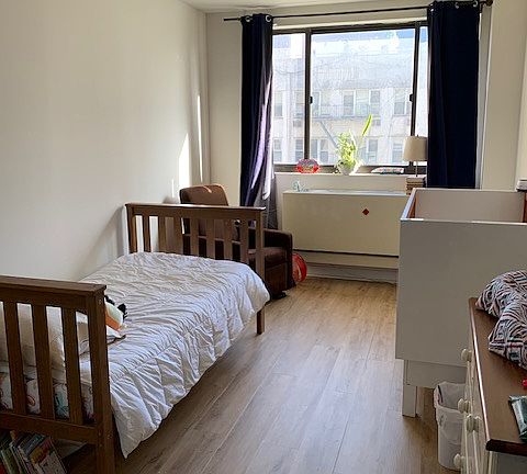 SHORT TERM FURNISHED SUBLET AVAILABLE DEC 1 THRU MARCH 31! Lease takeover also possible! This is set up as a flex 2 currently, but could be delivered as a standard 1 BR with the queen bed in the bedroom rather than the second half of the living area. There is currently a large bedroom set up as a kids' room with a smaller sleeping area set up in half of the living room. The sofa also pulls out into a bed. Condo-like finishes in the unit, the floors were redone, new appliances in the kitchen with a breakfast bar. The building is perfectly located a block from the 96 St express 2/3 stop, and features a roof deck, gym, tenant lounge with wifi, private movie theatre that can be reserved for a small fee, children's play area and huge laundry room. Perfect for anyone moving to the city who wants a quick, convenient and comfortable place right away while you look for a longer-term home. And if you decide this is it, great, the lease is available to take over starting Apr 1! In-person and virtual tours available, please inquire.