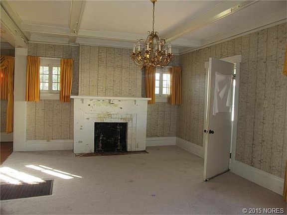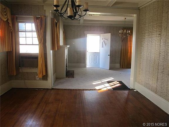 Spacious Home, needs some TLC, big rooms, 3 or 4 bed, 1.5 bath, 2 living areas, basement w/garage, corner lot, good location, walk to downtown Henryetta, floor furnace heat, window air, lots of charm.