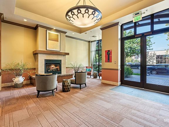 Beautifully updated condo in the heart of Downtown Boise at The Jefferson. This prime corner unit faces northeast for sun-filled mornings, gorgeous park views and filtered views of the foothills and the Capitol dome. The modern single-level design is ideal for lock and leave living, a second home or an investment opportunity. Clean lines, tall ceilings, and massive windows accentuate the feeling of openness and highlight the dazzle of downtown living. Completely updated throughout, this unit includes a gourmet kitchen w/brilliant marbled quartz countertops, soft-close cabinetry & stainless steel appliances and engineered hardwood flooring. The private balcony provides a tranquil outdoor space above the quiet street below. This is a secure building w/ lobby, elevators, ramp, mezzanine-level secured parking garage (1 space included), bike storage & storage unit. Buyer and buyer's agent to verify all.