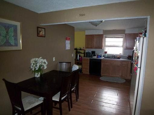 This 3 bedroom home in town has mature trees for shade in the spring and summer. Backyard has a nice deck overlooking a large fenced yard with storage building.