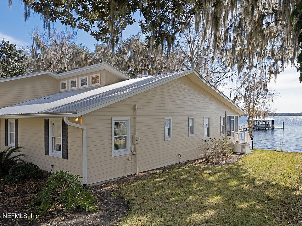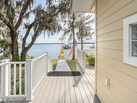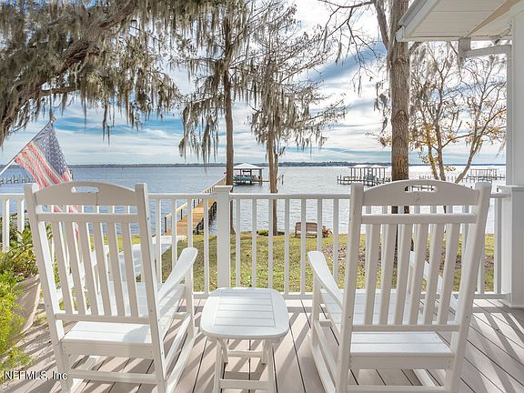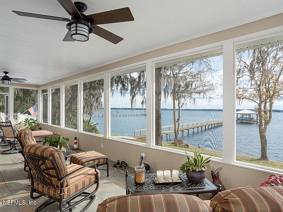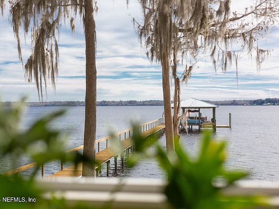 This remarkable riverfront home is nestled on just over an acre on the magnificent St. Johns River. Features include large great room, vaulted ceilings, and gas fireplace. Beautiful custom kitchen includes an Island bar, granite countertops, sunny breakfast area, and plenty of storage. Large utility room with extra storage. Huge screened porch and deck perfect for relaxing or entertainment. Serene master retreat with spacious ensuite. Outside includes a nice deck area along with partial wrap around porch. Additional storage with oversized garage along with large attic which has been upgraded with A/C and heat. Home has nice double garage with recent upgrades, an outside mancave/storage shed with shelving and electrical. Enjoy fishing and relaxing on well maintained dock with 2 covered boats slips.
