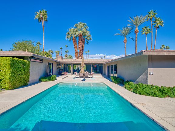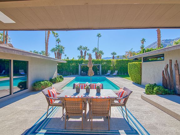 Only two families have held title at 323 West Stevens since 1951. That's really no surprise, you won't want to leave. Long recognized as the town's premier neighborhood, Old Las Palmas enjoys a Hollywood backstory dating to the 1920s. Walled, gated, and hedged living. Add to that, clean lines of a ranch-style home which seem to play up the setting. Who doesn't love a poolside cabana with drapes? There's also a built-in barbecue + fire pit + hidden outdoor shower. Check out the outdoor projector and groovy Baja-bench in the pool. Stereo speakers set the mood both inside and out. For those looking to entertain in grand fashion, this property is hard to beat. Lawn areas are perfect for large gatherings. Not a power line in sight and old growth palms for days. Heading inside, a central kitchen opens to living, dining, and the den. Walls of glass and San Jacinto views create their own kind of magic. En suite master features a spa-like construct, the perfect mix of form and function. Guest bedrooms 2 + 3 are located on the opposite end of the home. Fashionable Uptown Palm Springs is just a hop away. Take a closer look, this one feels like the perfect mix in beautiful Old Las Palmas.