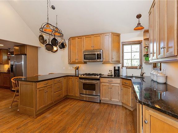 Renovated colonial cape that is truly a star! The Kitchen has maple cabinets, granite counters, SS appliances. All baths have been updated. 1 bed on the first floor, 3 upstairs. Master & 2nd bed both are en suite! Butlers pantry w/granite counter & maple cabinetry. The great room has a magnificent see-thru wood burning FP. The mantle is a hand carved piece of pine. 2 exposed wood beams in the great room.. Finished basement with a great entertainment room. The pool table; refrig/washer/dryer all are included. The maple stools in the kitchen are also included. The french doors from the kitchen lead you to an outdoor oasis. There's a deck and a patio, and still lots of green space. Come and see for yourself what this home has to offer you!