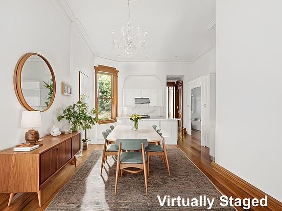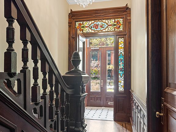 6 month tenancy option available. Experience unparalleled elegance in this exquisite duplex designed by Amzi Hill, located in the prestigious heart of Clinton Hill's historic district. Boasting over 1,600 square feet of refined living space, this exceptional residence offers a perfect blend of classic sophistication and modern amenities. The duplex is accessed through a beautiful vestibule adorned with original stained-glass windows, setting a tone of timeless charm from the moment you arrive. Inside, you'll find 4 generously sized bedrooms and 3 beautifully appointed bathrooms, ideal for those seeking both comfort and style. The grand living room, with its impressive 12-foot ceilings and meticulous woodwork, creates an inviting atmosphere of opulence. The expansive dining room and gourmet kitchen are a chef's dream, equipped with high-end appliances, including a Thermador refrigerator and a Bertazzoni convection stove. The apartment has convenient ductless heating and cooling, abundant closets, beautiful hardwood floors and exceptional woodwork throughout. Step outside to your private paved back garden, designed for effortless entertaining and relaxation, along with a serene deck off the primary bedroom-perfect for enjoying morning coffee or unwinding in the evening. This is a rare opportunity to immerse yourself in the grandeur of Clinton Hill living. Schedule your private viewing today and discover your new home!