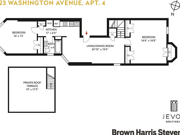 Low Fee Apartment Inquire within for additional rentals 323 Washington Ave. a well appointed two bed one bath 1,200 sq ft apartment, located in Clinton Hill Brooklyn. Featuring a roof deck terrace with 360 views of both Brooklyn and Manhattan skylines. Thoughtfully laid out and constructed, this bright top floor apartment featuring several large windows, allows for endless natural light pouring throughout the unit. The addition of sky lights found in the living and kitchen areas add additional light, but also elegance. The two over-sized bedrooms are positioned on opposite sides of the unit, privacy and space are never a concern, each large enough to add additional bedroom furniture or office space. Let's not forget the roof deck and the views, access the deck via your private in-unit staircase, ideal for those who work from home or those retreating to their home oasis to catch the beautiful sunsets. Modern stainless-steel appliances include a GE Stove, Fisher & Paykel Dishwasher and an LD Fridge, hardwood flooring, laundry area, as well as ample storage, and closet space. Ideally situated moments from restaurants, parks, bike lanes and public transportation, you'll never miss a beat. Pet lover? Pets are welcomed on a case-by-case basis.