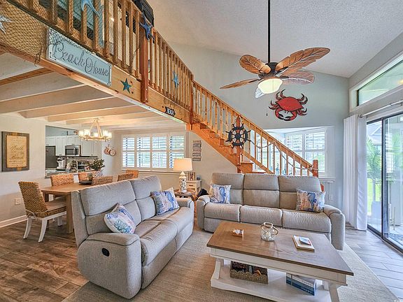 You will be amazed when you enter this classic, beautiful three-bedroom, two-bath beach home! Just minutes to the ocean with a private community pool in your backyard. Plantation shutters, LVP flooring throughout, vaulted and wood inlaid ceiling, fireplace, euro-styled gourmet kitchen with custom cabinets, solid surface countertop, and stainless steel appliances. Large primary suite with walk-in closet, whirlpool tub, double sinks, and custom cabinets in the bathroom. Split bedroom floor plan and exterior storage. Over 1,400 square feet and sold fully furnished. Large front porch and screened-in back porch - great for entertaining or just relaxing. A MUST SEE! Inside the Kingston Plantation, this 145-acre resort has it all - an oceanfront hotel, a new two-story brewhouse with indoor/outdoor dining, an optional fitness center and spa, 24-hour security, a gated community, and the list goes on. Perfect primary residence, second home or rental option. Some resort amenities are only available through the Hilton on-site rental program.