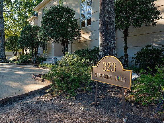Classic elegance situated on over an acre and at the end of the coveted Whispering Hills.An "awe" moment as you enter the home and face the massive 2 story sunken family room anchored by a wall of intricate window works with wooded and mountain views.5 spacious beds, 5.5 baths.Main level hosts 2 bedroom ensuite. Upstairs has 3 bedrooms/2 baths.Gameroom/craftroom/media space with kitchenette and full bath is located downstairs.Wet bar, great laundry and pantry area.Tons of storage.3 car garage.