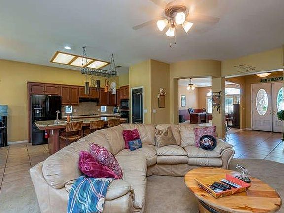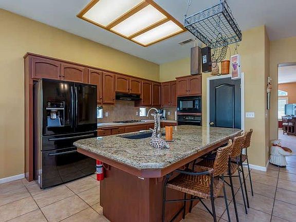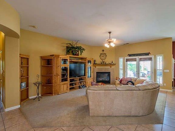 SPLISH SPLASH! Entertainment at its best. Just relax in the tropical oasis around your own pool or enjoy watching the golfers at the 9th hole from the front courtyard. With 2650 SQ FT and 4 bedrooms this home has ample space for everyone. Features include granite counters, tile floors, cozy fireplace in the family room & master bedroom and energy efficient solar just to name a few. Gated Community amenities include sports court, playground, gym, fishing and picnic areas.
