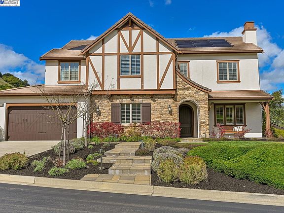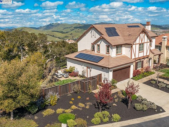 Fabulous home with spectacular panoramic views and sunsets located on a half acre end lot at the top of the ridge line in the prestigious gated community of Norris Canyon Estates. This pristine 4 Bed, 3 bath home plus playroom offers views from every window and over 300K in upgrades. Enter into a cozy sitting or dining area with coffee colored hardwood floors, large fireplace with plantation shutters on every window opening to an expansive view filled kitchen/family area with eat in kitchen, huge center island, top of the line Viking appliances including gas cooktop, double oven, microwave, wine refrigerator, and Sub-zero built in refrigerator. Full bed/bath downstairs and an outdoor living space with seamless transition from indoor to outdoor living with phantom screen for outdoor living. The 3-car garage comes equipped with 2 pre-wired EV charging plugs. The home also includes solar, nest thermostats, surround sound speakers, and Bluetooth ceiling fans throughout. The half acre top of the ridge line end lot with an East/West orientation with private landscape overlooks open mountain space. Come and enjoy the spacious and private panoramic views and spectacular sunsets! NCE is just minutes from top rated schools, Bishop Ranch City Center and easy freeway access.