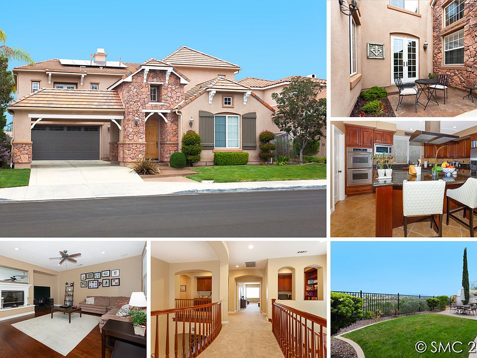 Indulge yourself in this impressively spacious 5Br plus hobby/craft area, 4.5Ba, 3455 esf view residence in prestigious Arroyo Vista. Numerous upgrades and amenities include a full bed & bath down great for guest or nanny, premium hardwood & tile flooring, and a Chefps kitchen in granite with stainless steel appliances, giant center island w/seating, and breakfast nook. Custom blinds and premium carpet further enhance this fabulous property in addition to beautiful archways, designer paint and French doors. Upstairs also features a computer or craft work area with built-ins. The luxurious master suite features coffered ceiling, oversized Roman style tub, and custom shower along with dual vanities, walk-in closet and picturesque views. With open space behind property the rear yard features a barbeque area, lawn, fire ring, and water feature. Add to all of this a tandem 3 car garage, whole house water filtration, Solar, best schools in North County, and you have a very distinctive property in an exceptional location. Welcome home!