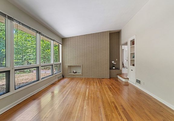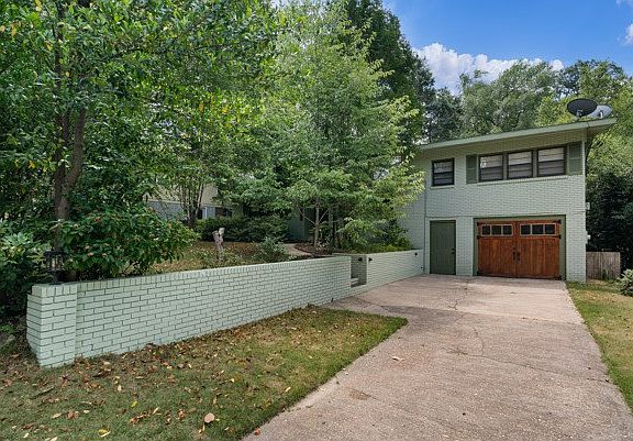 Connect with nature in this beautiful mid-century modern gem! This 3 bedroom, 2 bathroom home is full of natural light from the floor to ceiling windows in the living room and dining area. Many charming accents found throughout like built-in shelving and the brick accent walls that encompass the decorative fireplace in the living room and dining space. The spacious kitchen is complete with a breakfast bar, plenty of cabinets, and overlooks the keeping room that is perfect for a den or dining space, maybe even both! Located upstairs are two spacious bedrooms and a large hall bathroom with tons of cabinet space. The primary bedroom is on the main floor with an en-suite bathroom and generously sized closet. The private back yard boasts a large patio area, gardening space, and an outbuilding. Lights are also installed in the brick wall along the front steps and at the back gate. Beautiful custom garage door! Gorgeous blooming plants throughout the landscaping. Move in ready! A Must See!