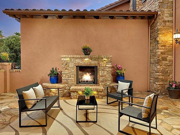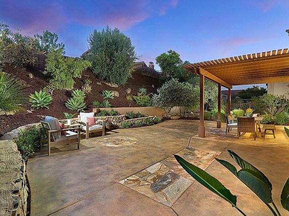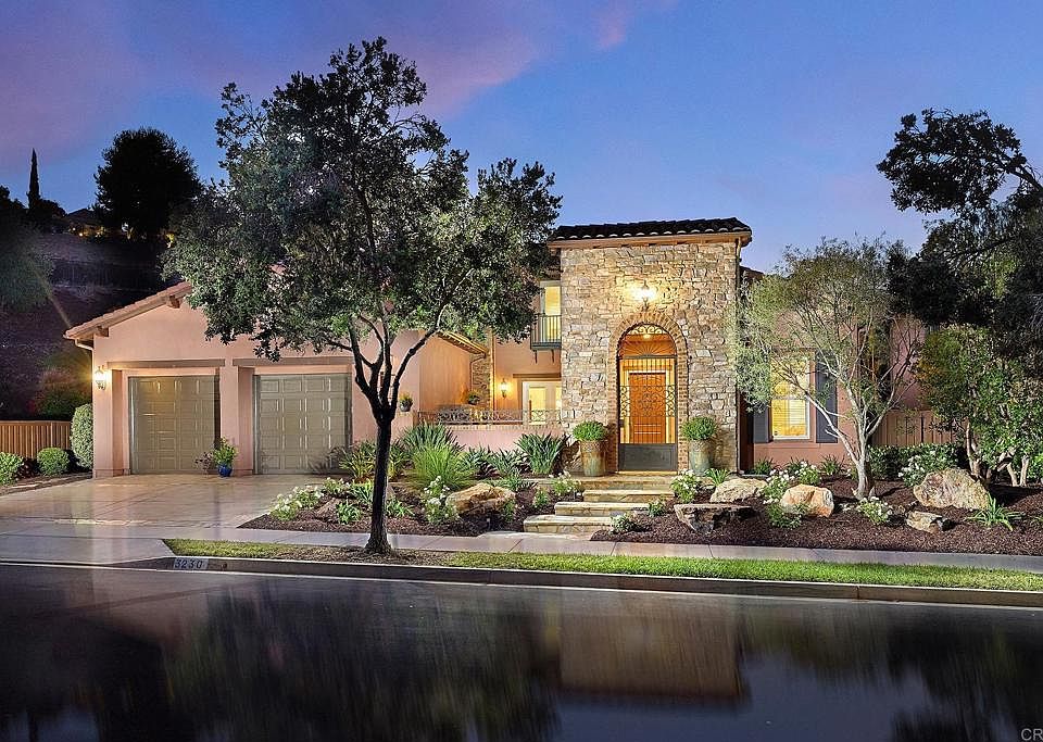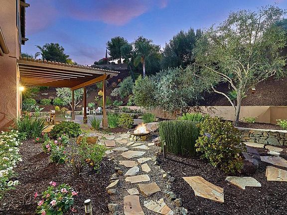 Coveted Floorplan | Main Level Owners Suite | Premier La Costa Ridge Location. Tucked at the end of a peaceful, private cul-de-sac in the prestigious gated enclave of La Costa Ridge, this exceptional home sits on an expansive ½-acre lot offering serene privacy and refined elegance. One of the most sought-after floorplans, it features a luxurious first-floor primary suite plus a separate guest suite on the main level—ideal for multi-generational living or out-of-town visitors. Upstairs, you’ll find two spacious bedrooms and a versatile loft perfect for a home office, media room, or play space. From the moment you arrive, this home impresses with its stone and brick façade, custom wrought iron gate and private flagstone courtyard with a cozy outdoor fireplace—a perfect setting for entertaining or quiet evenings under the stars. Additional outdoor living spaces include a grand covered rear patio and a secluded side courtyard, offering multiple areas to relax and unwind. The professionally designed landscaping boasts a variety of drought-tolerant plants and a zoned irrigation system for effortless maintenance. Inside, the home features fresh paint and newer carpet, providing a move-in ready canvas for your personal touch. Enjoy the security and tranquility of one of North County’s most exclusive communities—La Costa Ridge—while being just moments from top-rated schools, world-class golf, shopping, dining, and the beautiful beaches of Carlsbad.