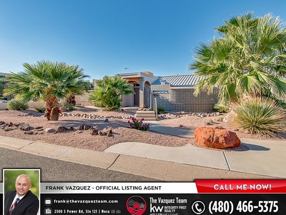 Totally remodeled custom 3BR/3BA home with a continental vibe. The landscaping on this oversize lot is stunning w/palm trees, cactus, unique boulders & river rock. The metal roof complements the contemporary style of the home. Off the living room thru French doors is a private, charming front courtyard w/fireplace, great for entertaining. Off the dining room thru French doors is a room w/an abundance of windows that would make a great office. The kitchen has sleek white cabinets, tile backsplash, corian counters, hidden pullout microwave next to the stove, walk in pantry and a custom curved eating nook w/overhead skylight. Master bedroom suite has fabulous ''spa'' bathroom & laundry room off the bath. Tall soaring ceilings & tile flooring thru-out most of home. Truly one of a kind.