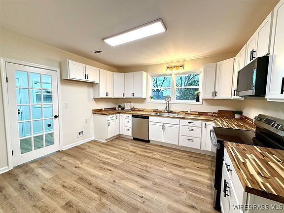 This fully remodeled, all brick 3-bedroom, 3-full-bath home feels exceptionally spacious and bright inside. Every inch has been refreshed, including a new metal roof, brand new windows throughout, completely new kitchen and bathrooms, new flooring, modern lighting, updated fixtures, and brand new stainless-steel appliances. The result is a comfy modern farmhouse home that feels both timeless and move-in ready.