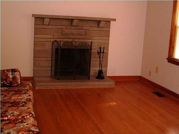 This beautiful completely remodeled 3 beroom, 2.5 bath Bedford stone home has full walk-out basement, 2 car finished attached garage, red oak hardwood floors, tile kitchen, dining room and bathroom. Custom cabinets, 2 stone wood burning fireplaces. Spacious family rooms and bedrooms. Also has an extra garage with large workshop. has 175' road frontage, large yard, mature shade trees.