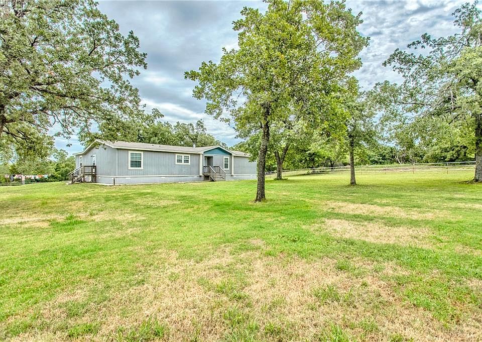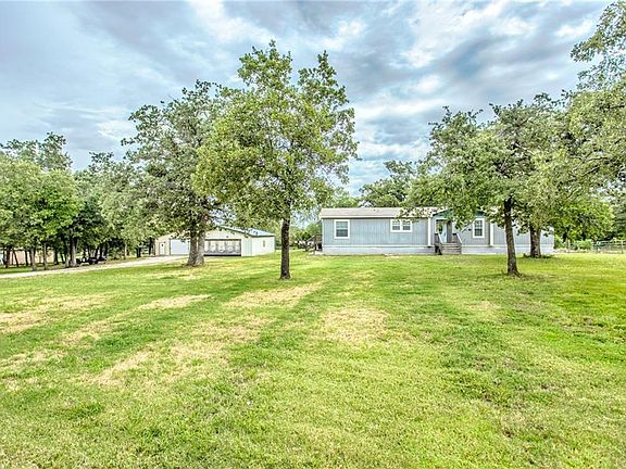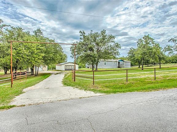 BACK ON THE MARKET NO FAULT TO SELLER OR PROPERTY! 5 Acres and a 4 bedroom home with two shops/detached garages. Contract cancelled at no fault of the sellers. There is also a loafing shed for your animals. The front portion of the acreage is fenced off for livestock. The east/back side has some trails to ride on and enjoy the wildlife. This modular home is sitting on a concrete slab with a large portion used as the back porch area. Very spacious rooms with a neat layout. You will surely like the 8 X 14 play/gaming area between two of the bedrooms. The kitchen sports a generous amount of countertop space and storage including a pantry. It is also OPEN to the living room and dining room. The primary bedroom is 14 X 17 with an attached sitting room/nursery. You will fall in love with the bathroom suite to include a walk-in closet, jacuzzi tub, separate shower, double vanities and additional storage. The laundry/mud room is 10 X 10 and does have space for storage and a freezer or two.