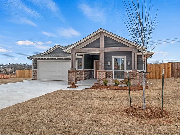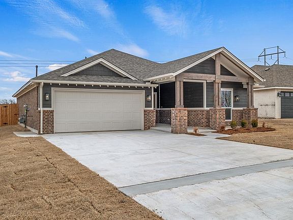 This stunning residence boasts an open floor plan, tall ceilings, and an expansive covered back patio. The kitchen is a host's dream, with a spacious flat island overlooking the living area and breakfast nook, along with a gas range, quartz countertops, and an impressive walk-in pantry. The main living areas feature beautiful hardwood flooring, adding to the overall allure. The generously sized primary bedroom offers double vanities with quartz countertops, a luxurious soaking tub, a tiled shower, and a large walk-in closet. The Mission Hills community is part of the historic Guthrie community with easy access to Edmond, Oklahoma City, and Stillwater. This neighborhood backs up to a beautiful creek with trees to capture that quiet and peaceful feeling of being home. This community will have a playground and a splashpad. Included features: * One-year home warranty * 10-year structural warranty * Guaranteed heating and cooling usage on most Ideal Homes * Fully landscaped front & backyard * Fully fenced backyard. Floorplan may differ slightly from completed home.