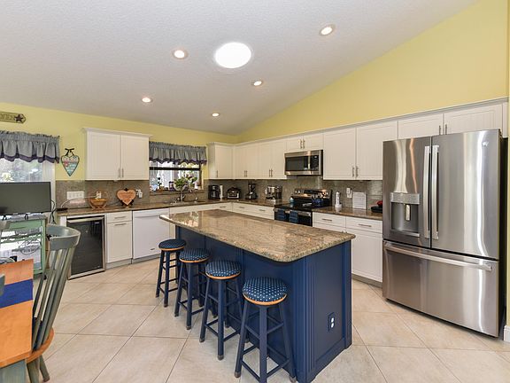 Rainberry Bay is an adult community with bocce, tennis, pickleball, and many other activities at the clubhouse. This furnished turnkey home offers 2 bedroom 2 and a half baths located in the estate section of Rainberry Bay. It has a great floor plan for entertaining and enjoying the private back oasis. There is an additional guest space, pool, sauna, and outdoor kitchen for year-round entertaining in Florida. 2 outdoor screened patios. 1 covered and 1 open. Rent includes internet, cable, electricity up to $175/month, monthly house cleaning and pool service. This a 24-hour gated community. 2 car garage, washer and dryer in laundry room inside, extra long driveway.This home has it all!
