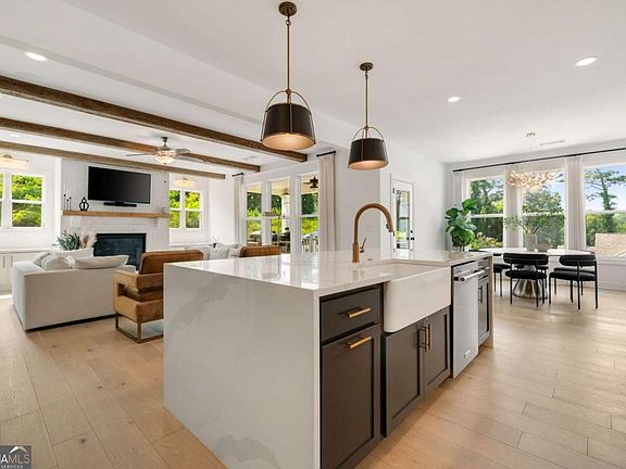 Finished basementSparkling waterfall islandHigh-end lightingAmple natural lightDining roomOversized primary bathroomTop-of-the-line appliances