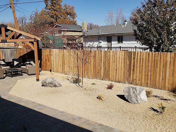 Refinished hardwood floors throughout and tile in the kitchen and bathrooms. Plenty of cabinet space in the kitchen with matching stainless steel appliances (no dishwasher). Cute little wet bar in the living room includes the mini refrigerator. So many great possibilities! The backyard hosts a large storage shed and pergola with lights already installed. Water wise landscaping in the front and back yards for easy maintenance. Two car garage with laudry area. Plenty of room for RV parking. Conveniently located near shopping, health care, schools, parks, free way access and just minutes from downtown Reno and UNR. This home is listed as is.