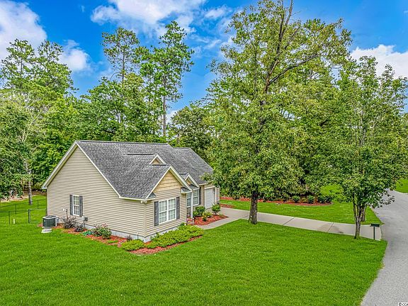 Just into the quiet Town of Aynor, lies this beautiful 2 bedroom, 2 bathroom home on a great-sized corner lot. A perfect opportunity to live with no HOA! The open floor plan allows for connection between rooms. The Living Room features high Cathedral ceilings, a gas-burning fireplace, and a cut-out above the mantle for your TV. The kitchen has stainless steel appliances and ample cabinetry storage. The adjacent dining space features a bay with a great backyard view. Separate washer/dryer room with built-in cabinets. The master suite is accompanied by a walk-in closet and the ensuite has a step-in shower. Both bedrooms have ceiling fans. Well-maintained LVP throughout. The garage floor has an epoxy coating and a roomy storage room inside. This lot features a fenced-in area in the rear and a large side yard, which could be utilized for an addition to the home or a spacious shed. All measurements are approximate but not guaranteed. Buyer is responsible for all verifications.