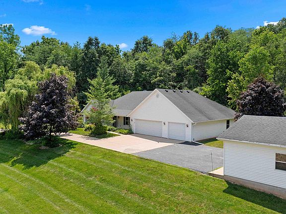 Enjoy private, serene living on this beautiful 2.1 acre property in Mackinaw! Imagine waking up to the picturesque landscape with towering trees, right in your own backyard. Only 10 minutes from the conveniences of Morton, this ranch home offers 3-4 bedrooms, 2.5 baths with 2440 square feet built on a slab. Step inside to the 22 x 19 Great Room with a gas fireplace and a convenient door to the patio. Spacious kitchen with quality cabinets and plenty of storage, plus stainless steel appliances including a double oven! Well cared for home with a whole house Generac generator installed in 2019, furnace-2019, water softner-2022,and water filtration system. Calling all car enthusiasts, check out the massive 3 stall garage with newer car lift, used just a handful of times, PLUS an additional 2 stall detached garage with an 80 gallon air compressor. Jack and Jill bath connects two of the bedrooms and the other bedroom has its own bath. Additional flex room is perfect for an additional bedroom, office, workout room, etc. Finished staircase offers access to attic with floor, perfect for storage or to finish as you like! This home is an ideal canvas for your updates and renovations. Make your appointment today to see this one of a kind property. This property is a partial of the original plat of 52 acres and is being divided. Please see associated docs for a drawing of the new plat.