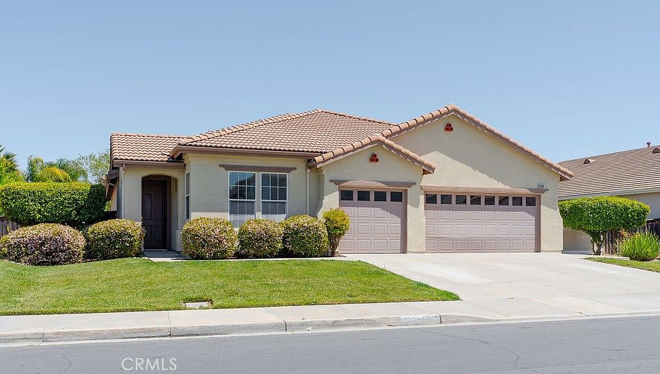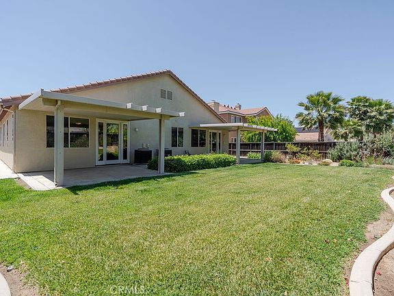 Beautiful TURNKEY single story home move in ready located in French Valley! This floorplan boasts 2733 square feet, 4 bedrooms, 3 full bathrooms, and a 3-car garage. The home was just painted on the inside and features upgraded baseboards, and mouldings. New wood flooring and two new A/C units were installed a few years ago. The kitchen is open to the large family room so cooking doesn't separate you from everyone else while you are cooking. The refrigerator is included with the home. The family room has a fireplace for great ambiance on those chilly nights. The oversized master features a retreat room which could easily be used as an office or workout room. There is a French door off the master which opens to the covered backyard patio. The yard has mature landscaping, lots of roses and has two alumiwood patio covers. Plenty of room for a pool in this yard if you want to add one! All bedrooms have ceiling fans. There is solar on the house, buyer must be willing to assume the lease. The laundry room is off the garage and has a nice sink, and counter space. Electronic doorbell and door camera stay with the home. This is a great neighborhood, and is within walking distance to Sheffield park, and French Valley Elementary. Close to shopping and Temecula wineries! Home sweet home awaits you on Renoir Road.